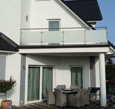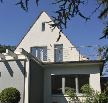 Balkongeländer aus Edelstahl mit Glas, Lochblech, Kunststoff, Holz oder klassisch mit Stäben horizontal, diagonal oder vertikal.