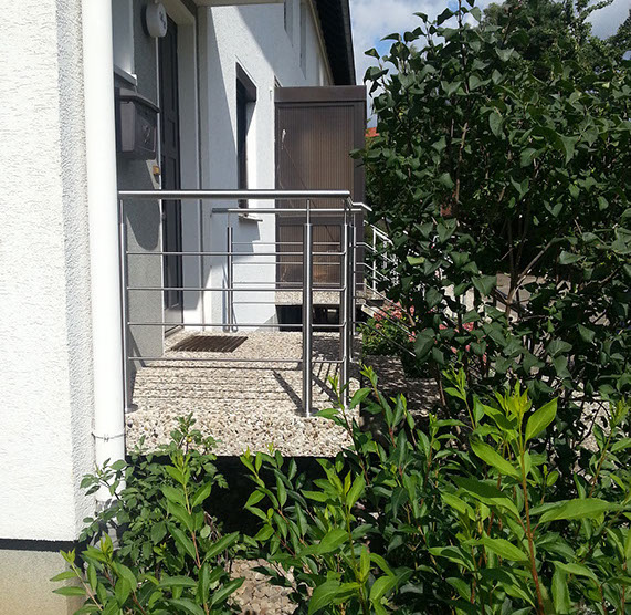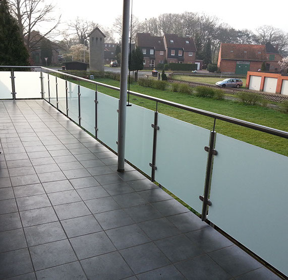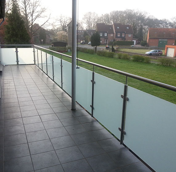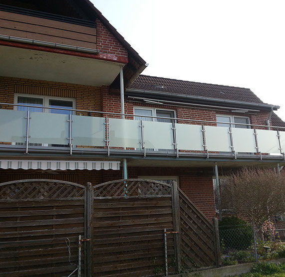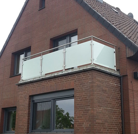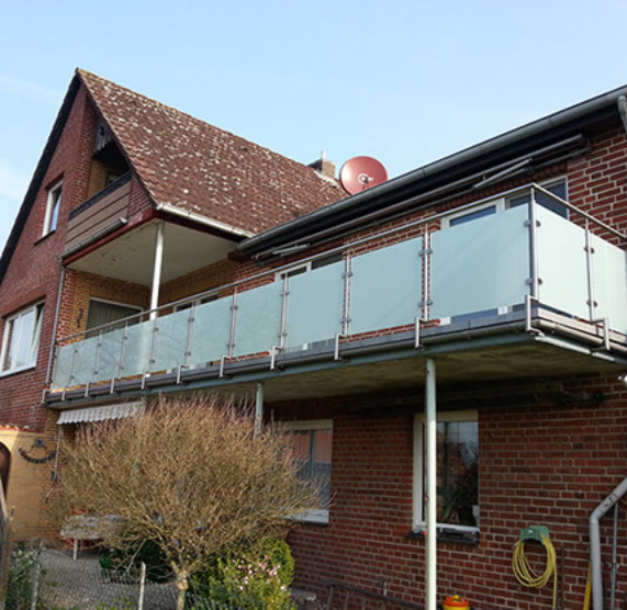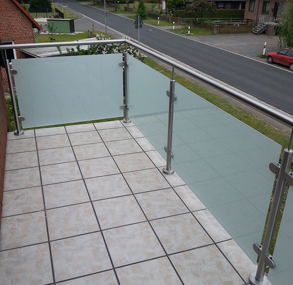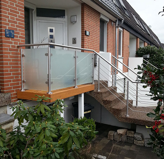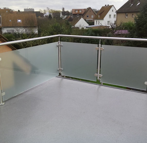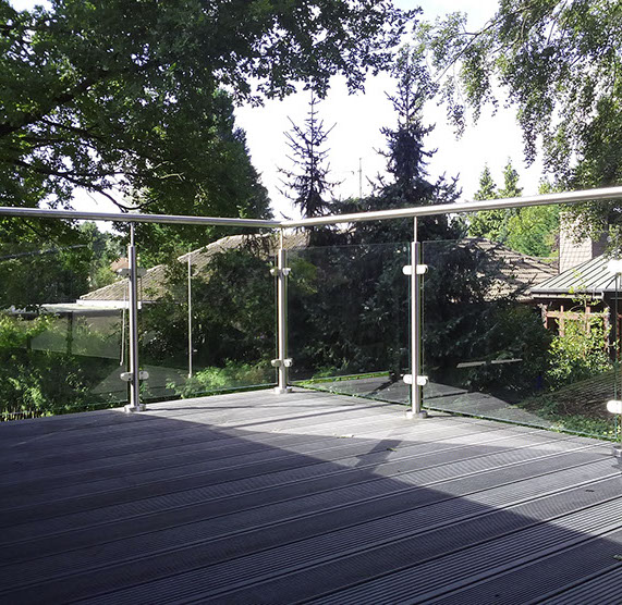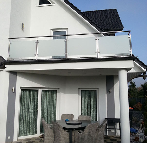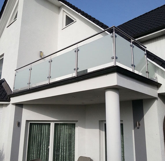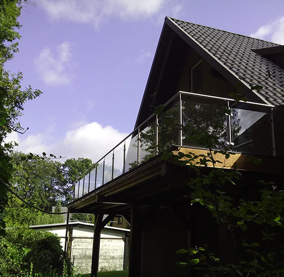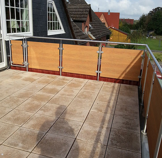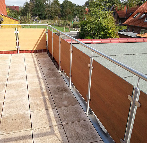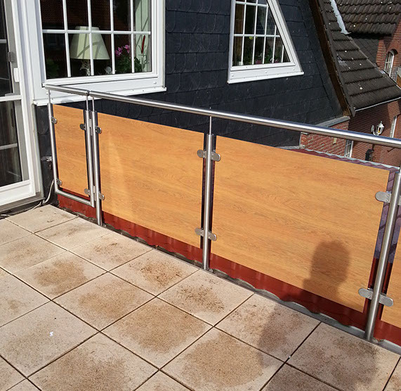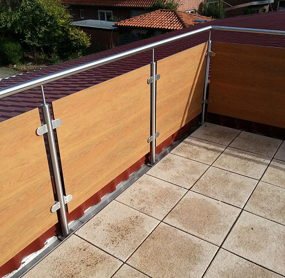 Balkongeländer aus Edelstahl mit Glas, Lochblech, Kunststoff, Holz oder klassisch mit Stäben horizontal, diagonal oder vertikal.