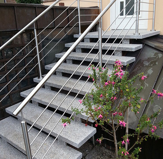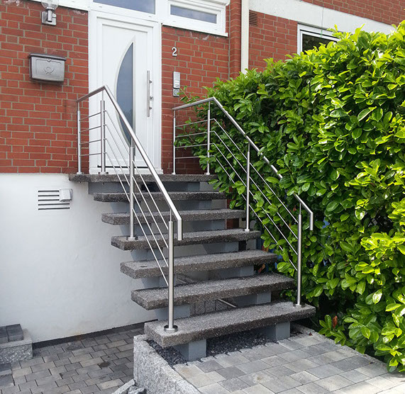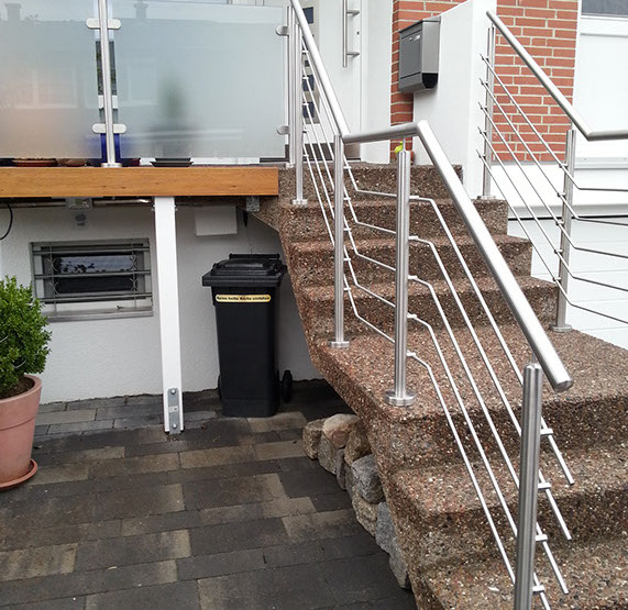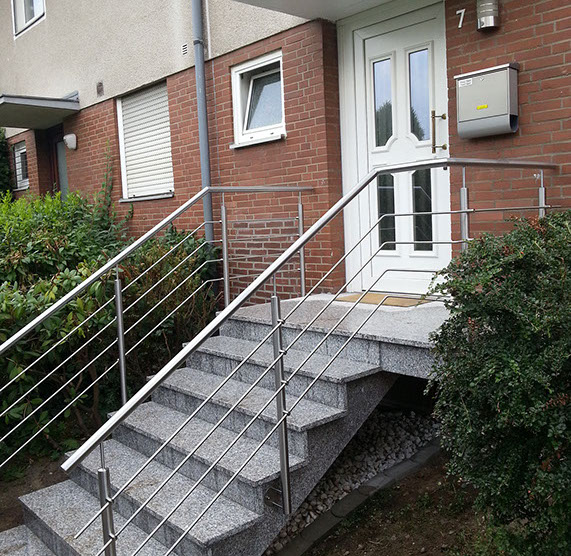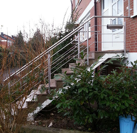 Edelstahl ist besonders haltbar, pflegeleicht und umweltfreundlich. Wir gestalten für Sie nach exaktem Aufmaß Treppengeländer für innen und außen,