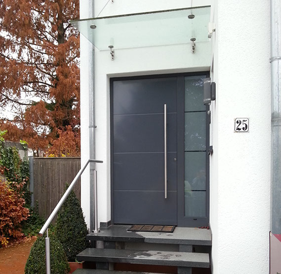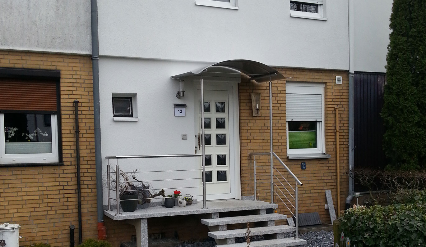 Lassen Sie Ihre Gäste nicht im Regen stehen. Ein Vordach schützt Ihre Türe und den Eingangsbereich Ihres Hauses vor Schmutz, Schnee und Eis. Individuell auf Ihr Objekt zugeschnitten, wird aus Ihrem Hauseingang ein toller Blickfang. Wir zeigen Ihnen gerne, wie Sie optisch ansprechende und qualitativ hochwertige Lösungen verwirklichen.