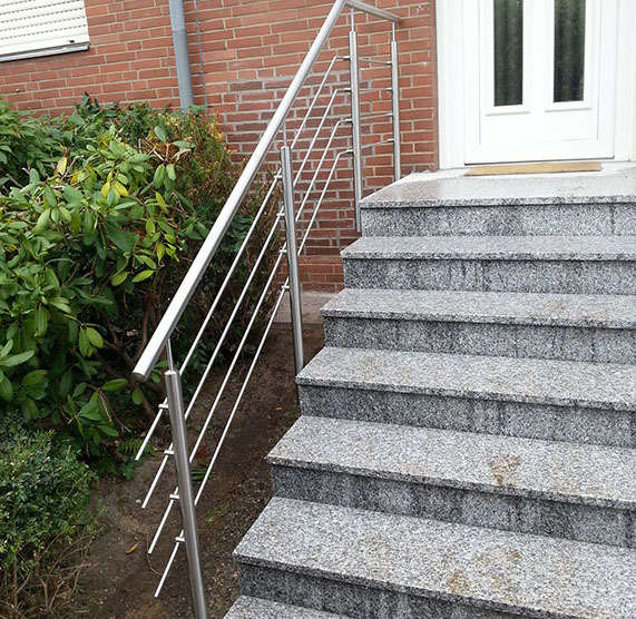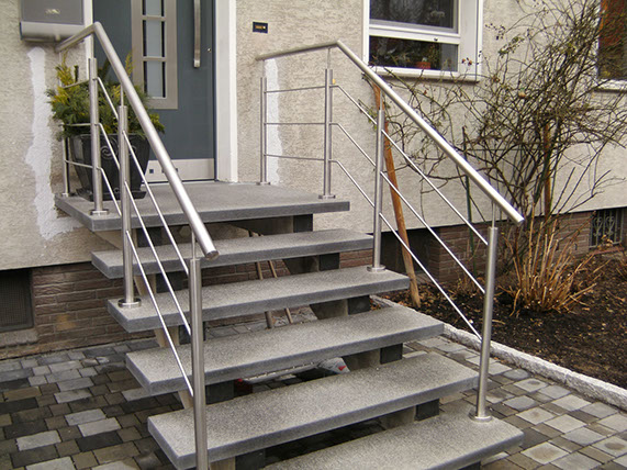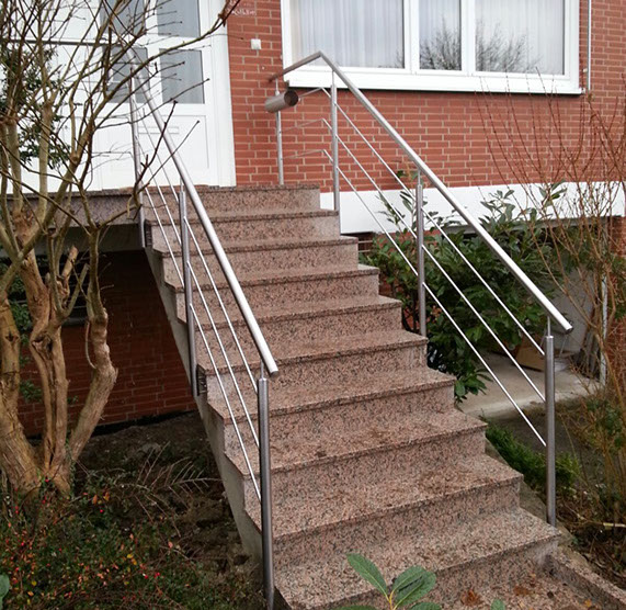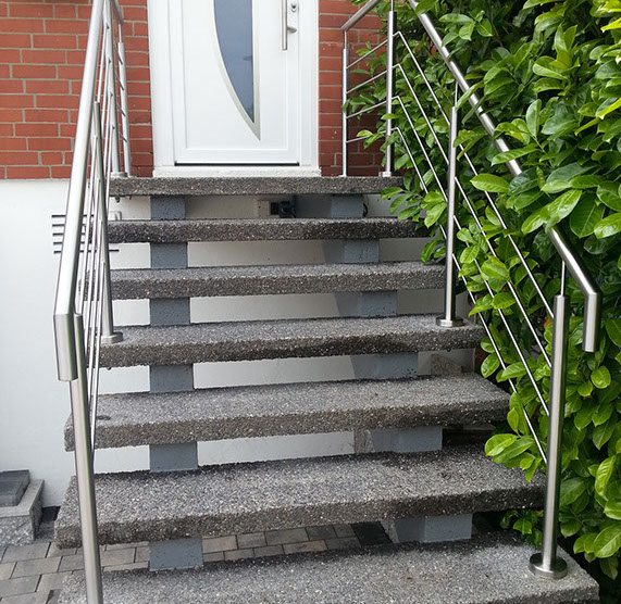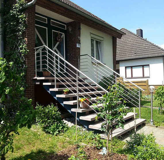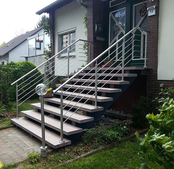 Sie suchen ein Treppengeländer, das auch in vielen Jahren noch wie neu aussieht? Verschweißte Segmente mit Edelstahlstäben und vorgesetztem Handlauf bieten Sicherheit und können individuell gestaltet werden.